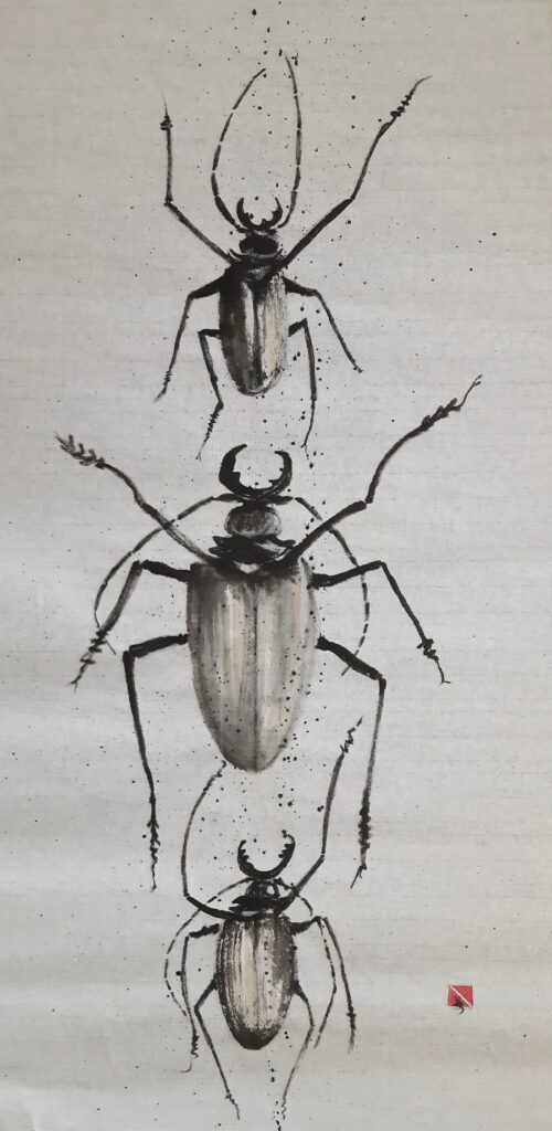 In China hat diese Malerei eine etwa 2500 Jahre lange Tradition. Diese Art der Malerei ist auch eine Verneigung vor dem Können der großen Meister*innen. Achtsamkeit, Geduld, Ausdauer sind Eigenschaften der Zen-Meditation.